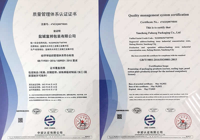 江鹽城富邦包裝有限公司創(chuàng)辦于2011年,地處環(huán)境優(yōu)美的鹽城大豐區(qū)三龍鎮(zhèn)工業(yè)集中區(qū),緊臨331省道和226省道,交通十分便利。是集研發(fā)、生產、經(jīng)營為一體的中型私營企業(yè),主要生產各種規(guī)格內、外銷中高檔瓦楞紙箱、彩色印刷、封箱膠帶、紙托盤、珍珠棉、EPS(泡沫)成型、免模、大板裁片的專業(yè)工廠,年產瓦楞紙箱達400萬平方米、封箱膠帶260萬平方米、EPS泡沫10萬立方米以上。工廠占地8000平方米,生產廠房近3000平方米,擁有進口1020秋山四色膠印機,生產工藝先進,檢測手段齊全,品質服務保證,本公司已通過ISO9001:2015國際質量體系認證,并嚴格持續(xù)遵照體系認證及商檢部門要求組織生產和經(jīng)驗管理。。。。。。 |